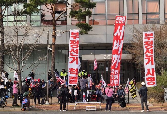 [현장] “부정선거 의혹 규명하라!” 서버까, 미루시스템즈 앞 대규모 규탄 집회