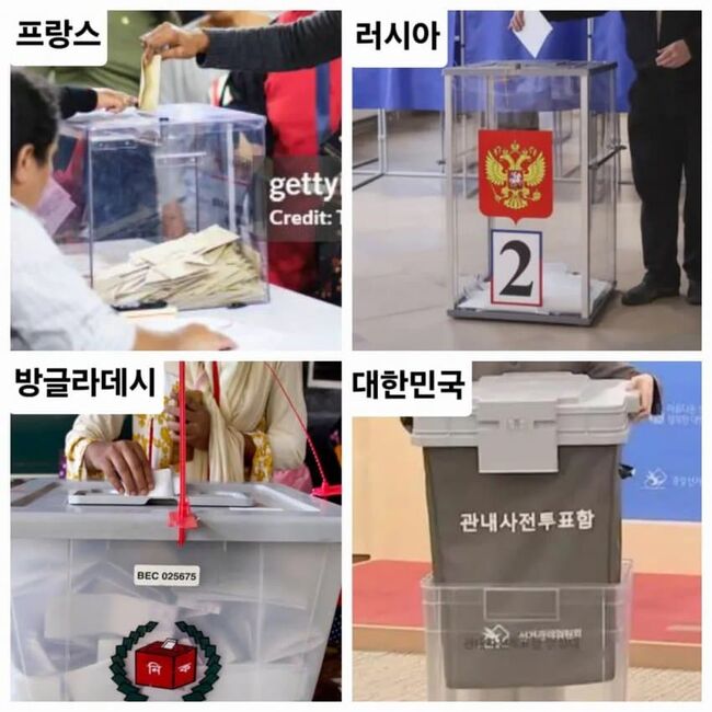 중앙선거관리위원회가 이번 6·3지방선거에서 투명한 사전투표함이라며 제시한 결과물이 네티즌들로부터 뭇매를 맞고 있다. 오른쪽 아래가 한국 선관위의 출품작. [사진=미국정치갤러리 캡처]