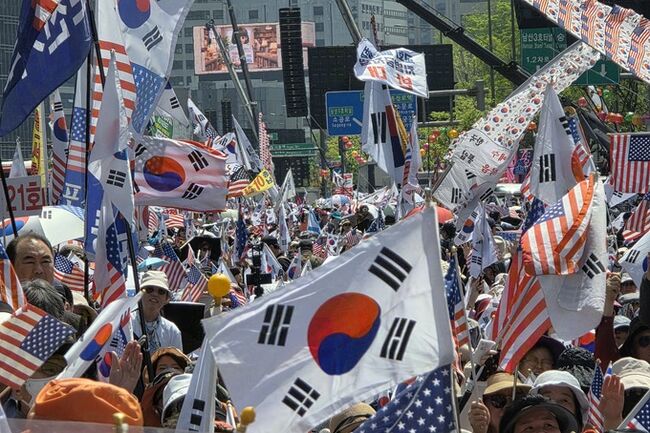 [현장] “이재명은 하야하라”… 4·19혁명 정신 계승 광화문 대집회