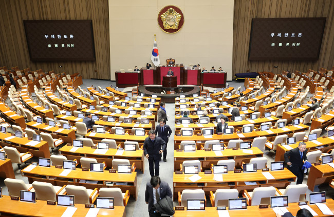 [포토] 은행법 개정안 무제한 토론 시작…본회의장 빠져나가는 민주당 의원들