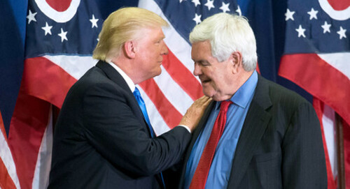 뉴트 깅리치(오른쪽) 전 연방하원의장과 도널드 트럼프 대통령. [AP=연합뉴스]