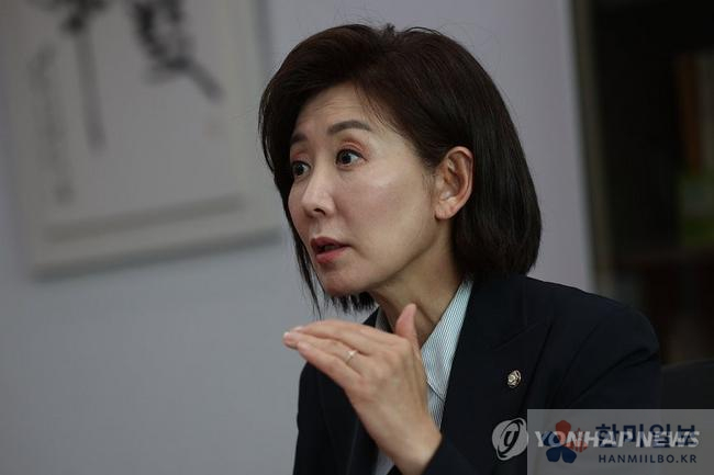 연합뉴스와 인터뷰를 하고 있는 나경원 국민의힘 의원. 연합뉴스