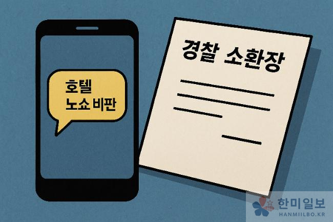 일반 국민이 카카오톡 대화방에서 이재명 대통령(당시 대선 후보)의 호텔 노쇼 논란 관련 비판 글을 공유했다는 이유로 경찰로부터 소환장을 받았다고 한다.