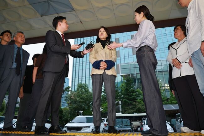 국가공무원법 및 공직선거법 위반 등의 혐의로 체포된 이진숙 전 방송통신위원장이 지난 2일 서울 영등포경찰서로 압송되며 취재진에 발언하고 있다. 연합뉴스.
