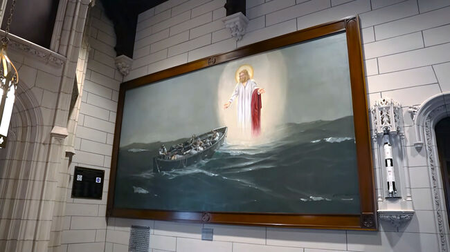 "물 위의 그리스도(Christ on the Water)"로 불리는 화제의 그림은 뉴욕 킹스 포인트 소재 미국 상선 사관학교(U.S. Merchant Marine Academy)의 윌리 홀 엘리엇 M 시 룸의 벽에 거의 80년 동안 걸려 있었지만, 2023년 홍수가 자주 발생하는 아카데미 예배당의 지하실로 무례하게 옮겨졌다.