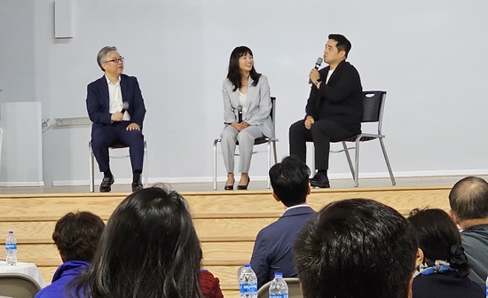 지난해 미국 대선을 앞둔 10월30일(현지시간) 뉴스앤포스트(NNP) 주최로 열린 제1회 포럼 모습. 홍성구(왼쪽) 대표기자와 김민아(가운데) 엠킴TV 대표·김성원 그라운드C 대표가 미국 조지아주 애틀랜타한인회관에서 한인 2030 청년 세대를 대상으로 패널토론을 하고 있다. NNP 제공