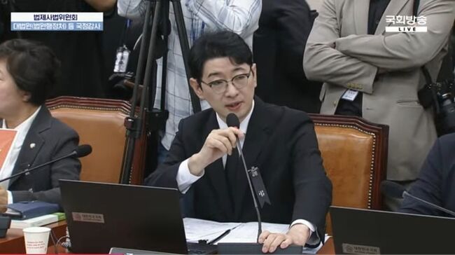 주진우 국민의힘 의원이 13일 대법원 국정감사에서 발언하고 있다. / 국회방송 캡처.