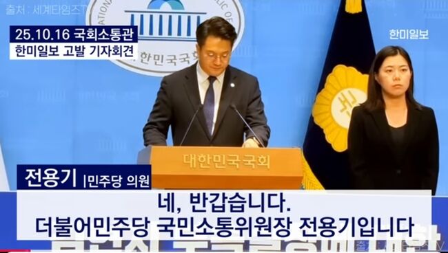 더불어민주당 전용기 국민소통위원장은 10월 16일 서울경찰청 앞에서 기자회견을 열고 “한미일보 기사와 칼럼 작성자 2명을 허위사실 적시에 의한 명예훼손 혐의(정보통신망법 위반)로 경찰에 고발한다”고 밝혔다.