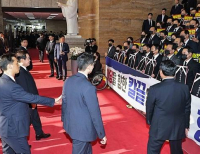 시리즈 최우수선수상(MVP)을 받은 일본인 선발 투수 야마모토 요시노부는 우승 트로피를 번쩍 든 채 전세기에 올랐다.