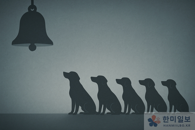 종이 울리자 일제히 자세를 갖춘 조건반사. 오늘 여당이 보여준 ‘파블로프의 개’의 정치학. 한미일보 그래픽