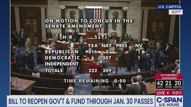 대통령은 "내 서명으로 연방 정부는 이제 정상적인 운영을 재개할 것이며, 나의 행정부와 의회 파트너들은 생활비를 낮추고, 공공 안전을 회복하고, 경제를 성장시키고, 모든 미국인이 다시 미국을 살 수 있는 곳으로 만들기 위한 노력을 계속할 것"이라고 선언했다.