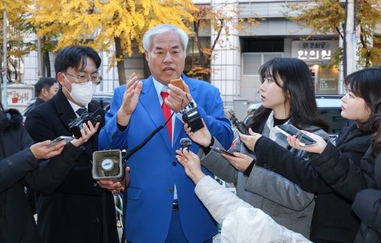 전광훈 목사가 18일 오전 서울경철청에서 취재진의 질문에 답하고 있다. 연합뉴스
