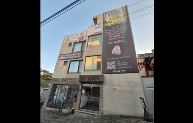 자기 건물에 “멸공” 현수막을 걸었던 애국 주민을 “명예훼손죄”로 경찰이 현행범으로 체포했다. / 사진=한미일보