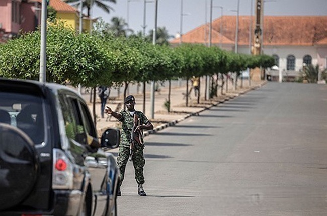 쿠데타가 발발한 기니비사우에서 군인이 대통령궁으로 통하는 도로를 통제하고 있다. AFP·연합뉴스