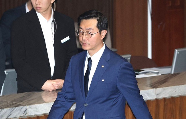 장경태 더불어민주당 의원이 27일 국민의힘 추경호 의원에 대한 체포동의안 투표를 마친 뒤 국회 본회의장을 나서고 있다. 연합뉴스