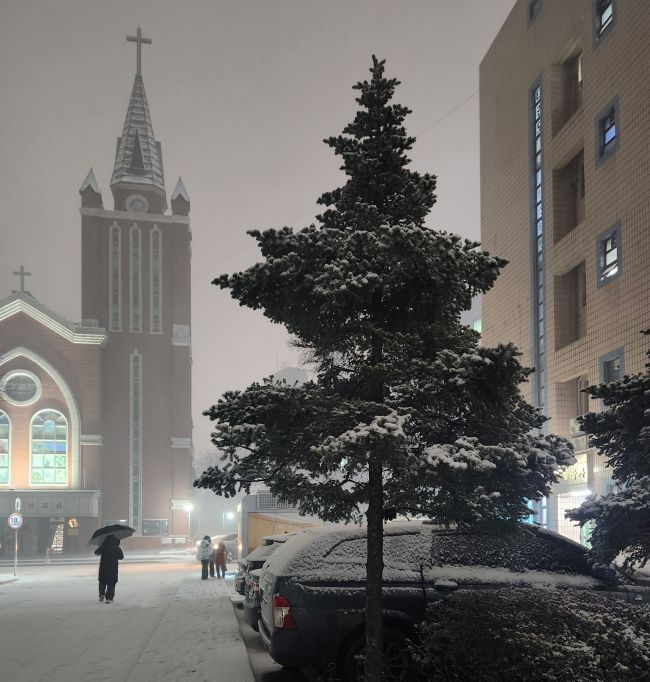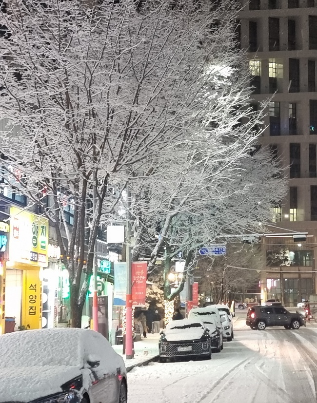 끝없이 내릴 것 같은 눈은 30분가량 퍼붓다 그쳤지만 이날 기온이 많이 떨어져 있던 탓에 눈은 바로 녹지 않았다. 차도와 인도를 점령한 첫눈은 그렇게 오랫동안 자신의 존재감을 과시했다.