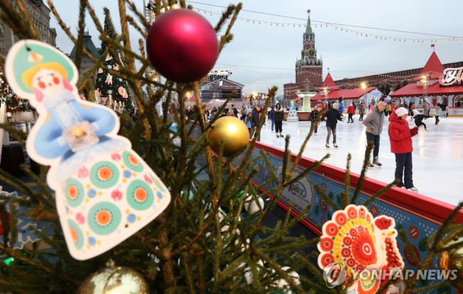크렘린궁 앞 붉은광장의 크리스마스 장식과 야외 스케이트장. EPA 연합뉴스