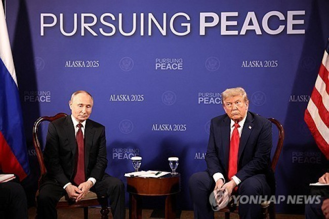알래스카에서 정상회담하는 트럼프(오른쪽)와 푸틴(왼쪽). 로이터 연합뉴스