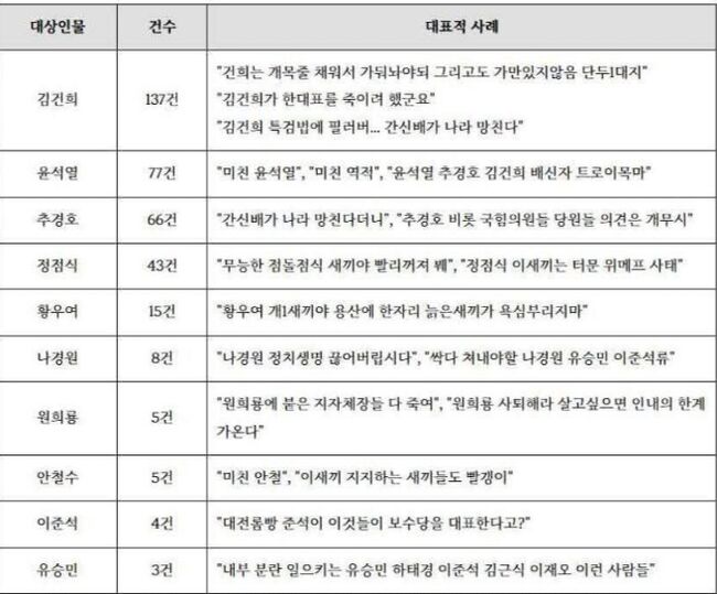 다음은 당원게시판 조사 결과와 세부 내용이다.