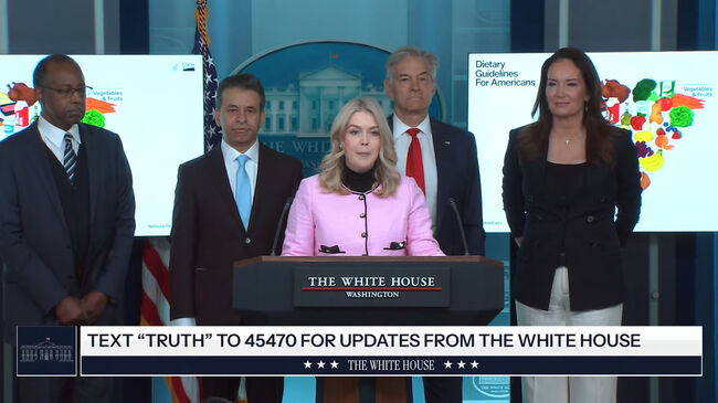 브룩 롤린스(Brooke Rollins) 농무부 장관과 로버트 F. 케네디 주니어(Robert F. Kennedy Jr.) 보건복지부 장관은 7일(수) 캐롤라인 레빗 백악관 대변인과 함께 기자회견을 열고 새로운 미국인 식단 지침을 발표했다.