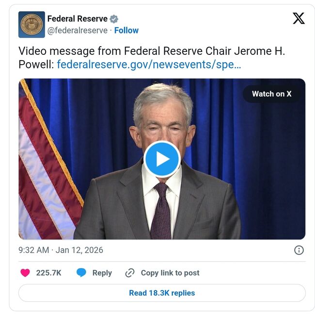 제롬 파월 연방준비제도 의장은 11일(일) 밤, 연방 검찰이 자신의 행위와 관련된 형사 조사를 시작했다고 밝혔다.
