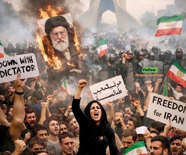 알리 하메네이 사진을 불태우는 이란 군중. [사진=X]