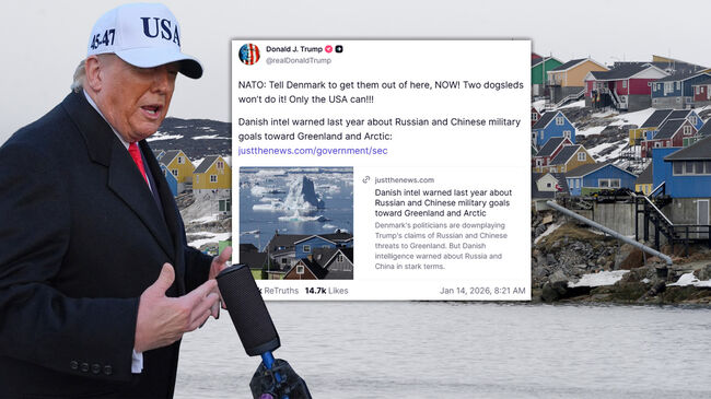 도널드 트럼프 미국 대통령은 14일(현지시간) 덴마크 정보기관의 평가를 인용한 저스트더뉴스(Just the News) 보도를 공유하면서, 나토(NATO)에 그린란드 매입 추진을 지지해 줄 것을 촉구했다. 해당 보도는 중국과 러시아의 그린란드 영토에 대한 관심을 경고한 내용을 담고 있다.
