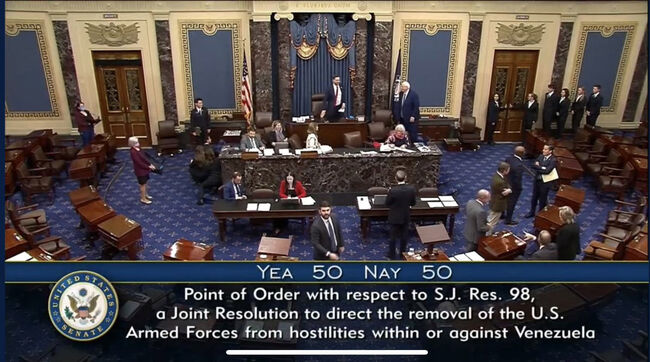 미 연방 상원 공화당 의원들은 14일(현지시간) 도널드 트럼프 대통령의 베네수엘라 추가 공격 권한을 제한하려던 전쟁권한 결의안을 기각하기로 표결했다.