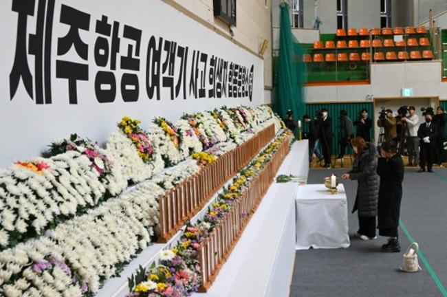 2024년 12월30일 전남 무안군 무안종합스포츠파크에 마련된 제주항공 여객기 사고 희생자 합동분향소를 찾은 조문객들의 모습. [사진=연합뉴스]