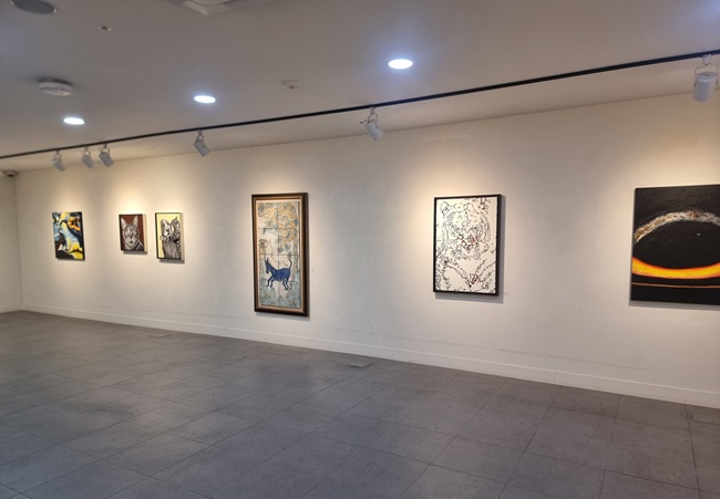 그 외에도 이번 전시에서는 그의 대표 브랜드인 호랑이와 까치 소재의 작품을 만날 수 있으며 강아지와 고양이를 표현한 그림도 여러 점 전시 중이다.