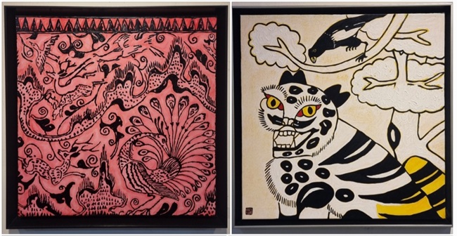 작가는 호랑이를 소재로 많이 작업해 일명 ‘호랑이 작가’로 불린다. 그의 호랑이는 민화 속 호랑이처럼 친근하고 어린아이처럼 자유로운 존재로 표현된다.