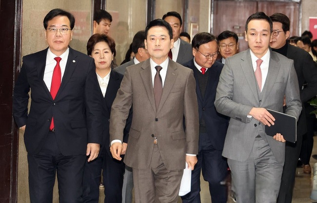 국민의힘 장동혁 대표가 29일 국회에서 열린 최고위원회의에 입장하고 있다. [연합뉴스] 국민의힘 한동훈 전 대표가 결국 제명됐다.