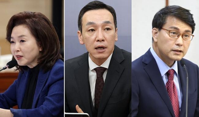왼쪽부터 김민전, 김민수, 윤상현 국민의힘 의원. [사진=연합뉴스]