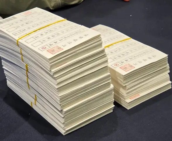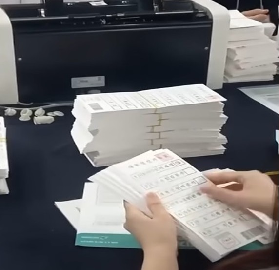 2025년 6월 대선 용인 수지 관외사전투표에서 발견된 빳빡한 투표지 다발. [사진=박주현 변호사 페이스북]