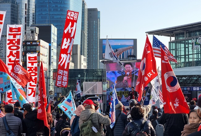 서버까국민운동본부(서버까) 주최로 서울역 광장에서 21일 열린 부정선거 규탄 집회에서 장재언 박사와 이상로 정치평론가는 ‘벽돌 투표지’를 정규 투표지로 처리한 의혹과 관련된 선관위원장 15명을 미국 중앙정보국(CIA)에 신고한다는 핵폭탄급 주장을 펼쳤다.