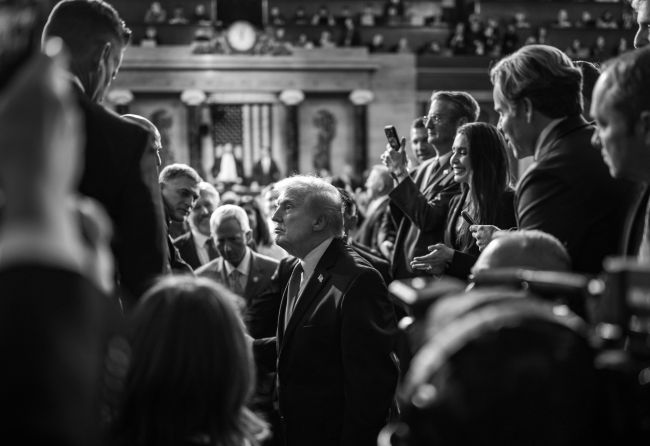 도널드 트럼프 미국 대통령이 24일(화) 미국 국회의사당 하원 회의장으로 들어서고 있다. [사진=백악관]