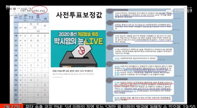이영돈 PD는 “사전선거에서 선관위 발표 투표자수와 실제 사전선거 투표함에 들어 있는 숫자가 다르다”고 했다.