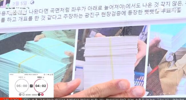 이 PD는 “실제로 선관위가 발표한 사람은 4만명이라고 하면 실제로 투표함에 들어가 있는 숫자는 3만표로 1만표 정도가 차이가 나고 그 1만표가 기본적으로 민주당표로 둔갑을 해 있는 것”이며 “이들 숫자가 다르다고 하면 실제로는 1만표가 비는데, 그 1만표가 어떻게 된 것인지가 지금 열심히 설명한 배춧잎투표지라고 저는 파악을 했다”고 했다.