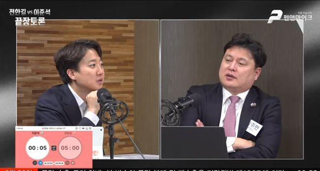 이준석 대표(왼쪽)와 김미영 대표. [팬앤마이크 영상 캡처]
