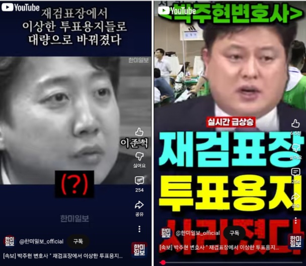 ▶ 한미일보 유튜브 영상 ▶ 박주현 변호사 “재검표장 투표용지가 사라졌다”