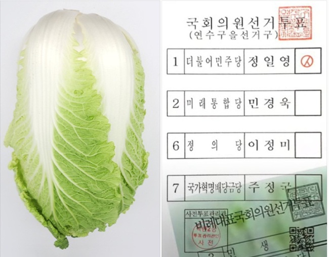 배춧잎 투표지란 제21대 총선 사전투표에서 지역구 투표지 하단에 비례대표 투표지가 겹쳐 인쇄되어 배춧잎처럼 보인 것을 가리킨다.