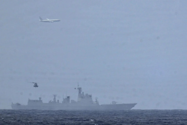 지난 2월 필리핀·대만 간 바시해협의 중국군 함정과 미군 항공기지난 2월 필리핀·대만 간 바시해협의 중국군 함정과 미군 항공기 [홍콩 SCMP 캡처]
