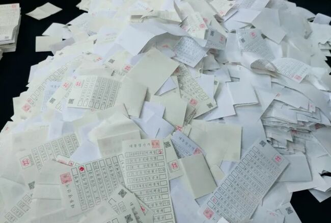 이에 대해 중앙선거관리위원회는 “해당 투표지는 현장에서 롤 용지로 인쇄·발급되는 관내 사전 투표지로 구·시·군선관위의 청인(도장)과 사전투표관리관의 도장이 정상적으로 인쇄된 정규의 투표용지가 맞다”며 “롤용지는 생산시기·보관상태 등에 따라 변색의 정도가 다를 수 있다”고 주장했다.