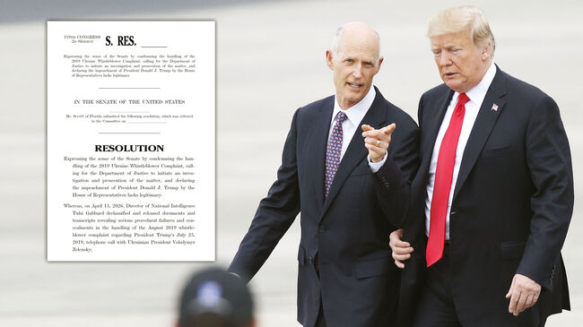 스콧 의원이 제출한 결의안은 상원에게 "2019년 우크라이나 내부고발자 사건 처리 방식을 규탄하고, 법무부에 해당 사건에 대한 조사 및 기소 가능성을 촉구하며, 하원의 도널드 J. 트럼프 대통령 탄핵은 정당성이 없다고 선언할 것"을 요청하고 있다.