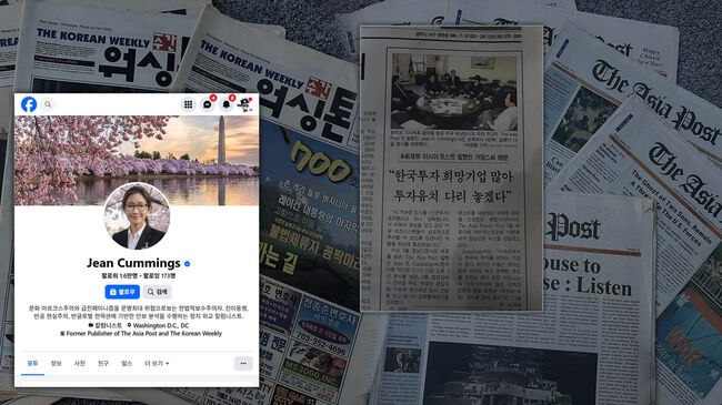 그녀와 달리 한국에서 화제가 되고 있던 칼럼니스트 Jean Cummings는 과거 워싱턴 한인사회에서 언론계에 몸담았던 인물이자 다양한 사업체를 운영했던 사업가 출신으로, 현재는 정부 컨트랙트를 수행하는 민간 기업에서 정치, 외교, 안보 분야 백엔드 분석가로 근무하고 있다.