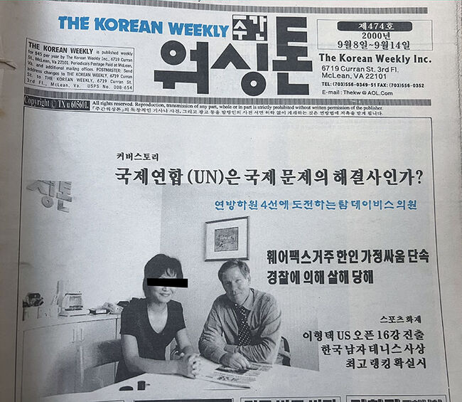 2000년 당시 연방하원의원이던 탐 데이비스(Tom Davis,공화·버지니아)와 진 커밍스 발행인이 단독 인터뷰한 기사가 주간워싱톤에 실렸다. [사진=진 커밍스 본인 제공]