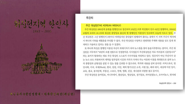 2006년에 워싱톤지구 한인연합회와 미주한인재단이 공동을 발간한 "워싱턴지역 한인사 1983~2005" 209쪽에는 이렇게 기록돼 있다: