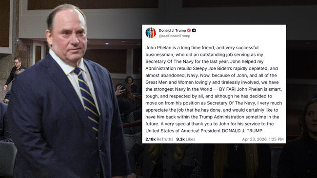 도널드 트럼프 대통령은 23일(목) 트루스소셜에 "존 펠런(John C. Phelan)은 오랜 친구이자 매우 성공한 사업가이며, 지난 1년간 해군 장관으로서 탁월한 업적을 남겼다"면서 "존은 내 행정부가 '졸린 조 바이든' 시절 급격히 약화되고 거의 방치되었던 해군을 재건하는 데 큰 도움을 주었다. 존과 헌신적이고 열정적으로 참여해 준 모든 훌륭한 남녀 장병들 덕분에 우리는 단연 세계 최강의 해군을 보유하게 됐다!"고 썼다.