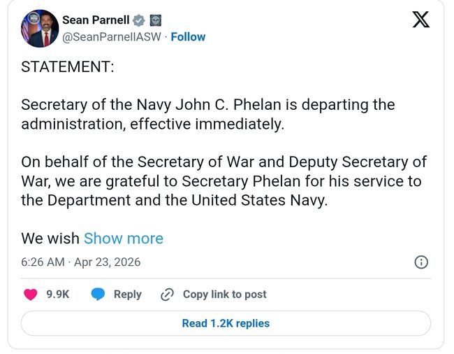 그는 "존 펠런은 똑똑하고 강인하며 모든 사람에게 존경받는 인물"이라며 "비록 해군 장관직에서 물러나기로 결정했지만, 나는 그가 해낸 일에 진심으로 감사드리며, 언젠가 트럼프 행정부에서 다시 함게 일할 수 있기를 바란다. 미국을 위해 헌신해 준 존에게 진심으로 감사드린다!"라고 덧붙였다.